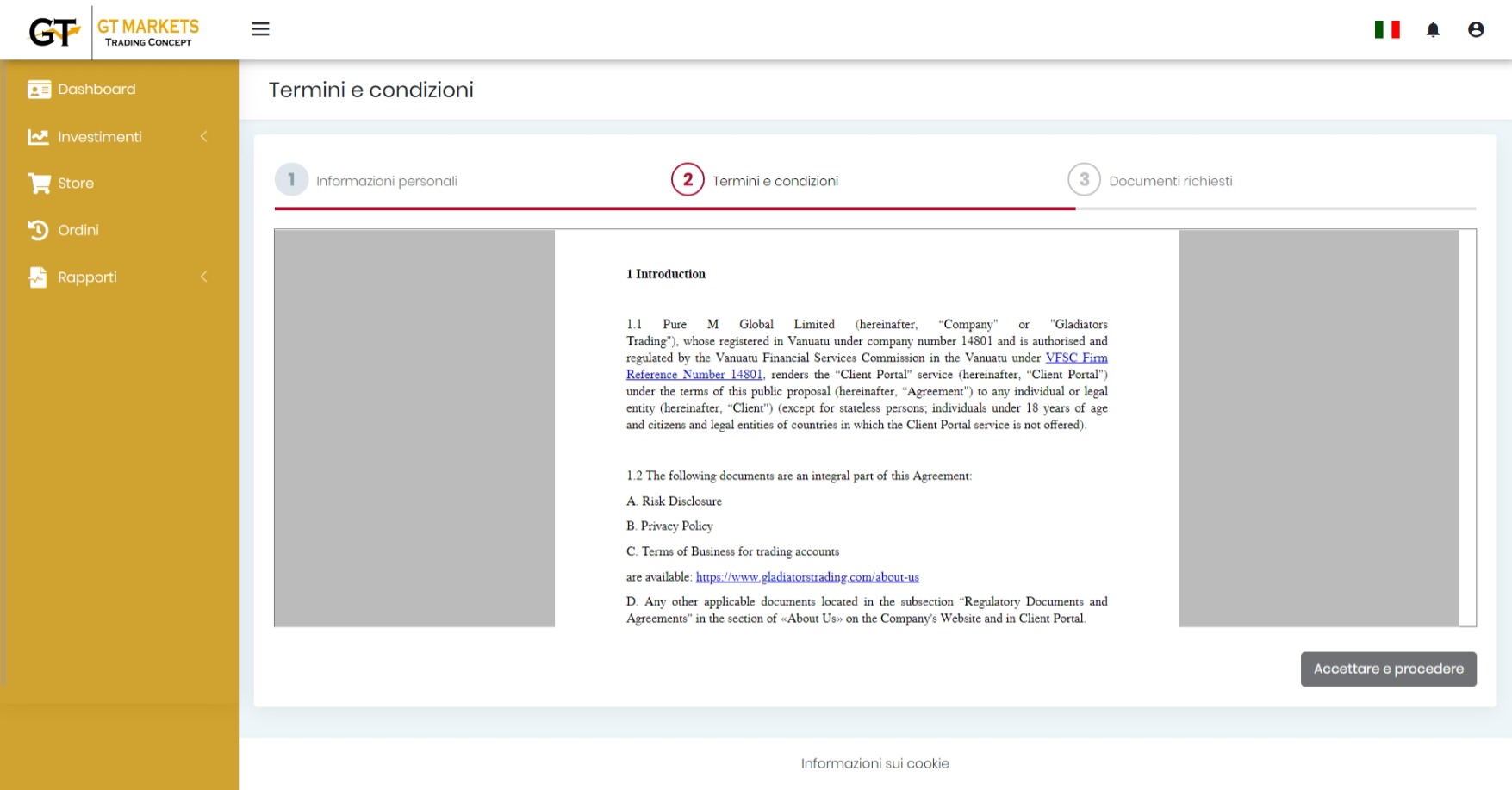 - Li inviamo alla loro email di supporto: support@gt-markets.com